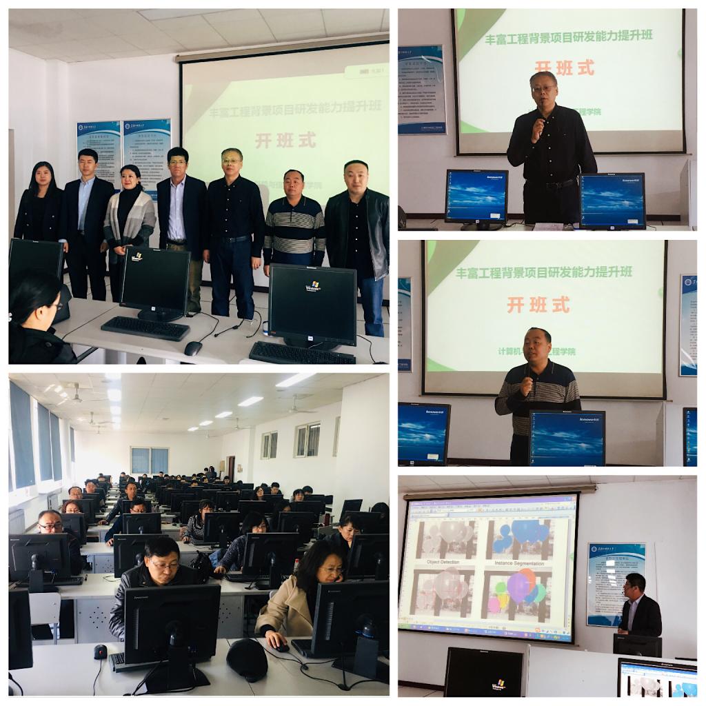 开班式上,计算机学院党委书记吴新文对东软集团的项目负责人一行表示欢迎,就提升班培训发表了讲话。一是开办项目研发能力提升班的重要意义。这是大力推进校企融合的集中表现,是加强内涵建设、夯实基础的重要措施,是提升教育能力的必由之路,更是强化研发能力、增强服务学校、省及地方力度的重要途径。二是抓实管理及考核,办出实效。学院携企业之举,共同管理,共同出果。教师要尊重企业工程师的劳动,虚心请教,力求收益。三是办班的延伸作用。项目提升班的开办不仅拉开了教师校内长期培训的序幕,而且将持续和深挖双方合作项目,组织并带领团队入驻双创园,为大学生创新创业和各级各类大赛取得标志性成果奠定强有力的师资基础。