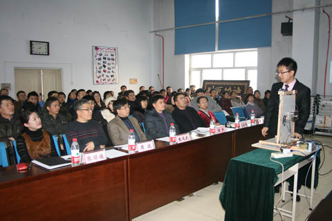 会上,由物联网工程专业2012、2013级学生组成的6个素质教育研究团队展示了“网络指纹锁”、“网络温湿度监控仪”、“无线监控小车”、“语音控制台灯”等作品。各团队首先从作品实现功能、设计方案、硬件电路、软件流程、作品展望等方面对作品的设计和制作进行了阐述。随后,团队成员对每件作品进行了实际演示操作,运用手机进行远程遥控“网络指纹锁”,实现了无线开锁的功能,该作品还可以用于教室指纹点名;使用WIFI等无线传感技术实现了“语音控制台灯”的智能控制功能,该作品还可以自由使用语音实现家用电器的智能控制;“无线监控小车”通过摄像头、WIFI、网络平台实现网络实时监控的功能,可以用于危险、负环境的监测。这些作品充分展现出学生对物联网传感层的数据采集、无线传感网、智能控制、网络监控等技术的运用,实现了学生对所学的物联网工程专业基础理论知识的应用,并将其转化成具有较强实用价值的实物作品。