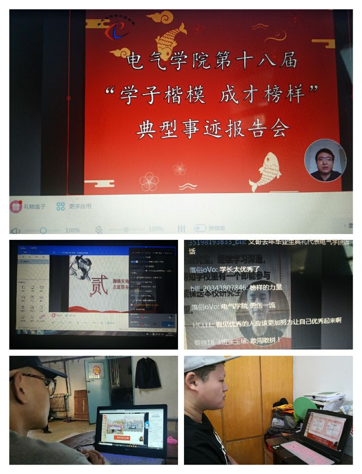 按照学校下发2020届毕业生教育工作方案总体要求,为充分发挥榜样引领作用,交流学习生活经验,分享成长成才历程,6月15日晚,电气学院组织召开了第十八届“学子楷模 成才榜样”典型事迹报告会。
