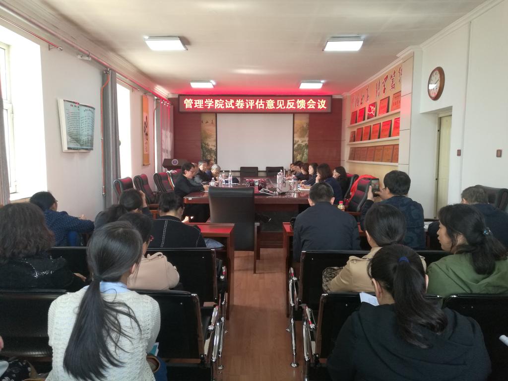 4月26日下午,学校评估中心、教务处领导及工作人员到管理学院进行了试卷评估意见反馈。会议由学校副总督学邢中光教授主持,管理学院院长谭旭红、教学副院长郭红、各系主任及部分教师参加了会议。