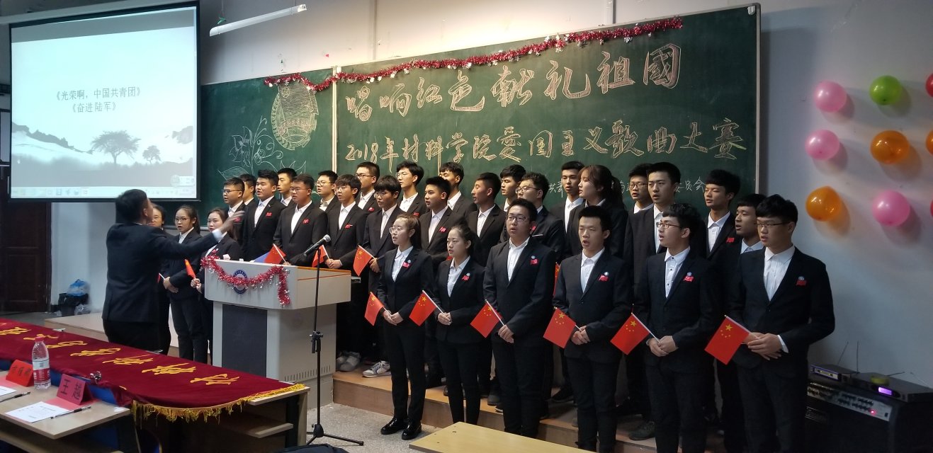 11月15日,材料学院在主楼ES0303教室举办了以“唱响红色,献礼祖国”为主题的爱国歌曲大赛。材料学院党委书记马波,材料学院全体辅导员老师以及各二级院系团委副书记参加了本次活动。