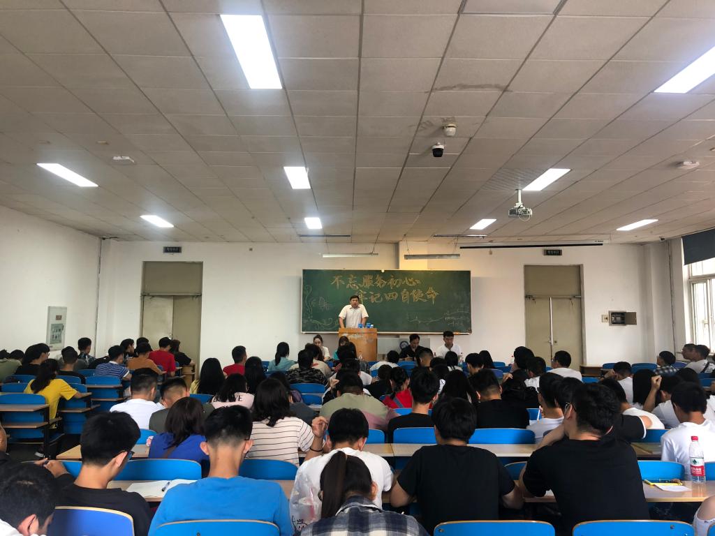 25日下午,学院在主楼EN0301召开“不忘服务初心牢记四自使命”主题学生干部大会。材料学院党委书记马波,学工办全体成员、学生组织全体成员、全院班级主要学生干部、寝室长参加此次培训会,会议由王磊主持。大会第一项由学院分团委书记王锐宣读《材料学院首周教育指导方案》;第二项,辅导员王越讲解如何高效完成学生工作;第三项,辅导员王磊从如何不忘学生干部初心以及如何运用SMART方法制定目标这两个角度进行讲述;第四项,学工办主任邬丽群讲述学生干部“自我服务、自我管理、自我教育、自我监督”的四自使命内涵与要求;会议最后,马波书记做了讲话,马书记指出学干队伍是学院学生工作的重中之重,要竭力打造一支作风正、肯吃苦、能奉献的真材实料队伍,新学期大家要努力探索学干队伍建设新路子、创新工作新模式、实现成绩新突破。