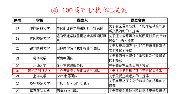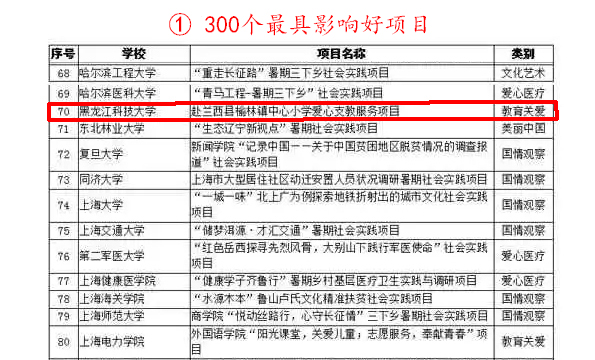 由团中央学校部指导,中国青年报社、人民网共同主办的全国大中专学生志愿者暑期“三下乡”社会实践“千校千项”成果遴选中,幻影手机官方网站_幻影(中国)团委周恩远老师指导的“赴兰西县榆林镇中心小学爱心支教实践项目” 入选全国300个 “最具影响好项目”;环境与化工学院团委赴井冈山社会实践团“星火荣耀实践团队”入选全国300个“匠心传播正能量”作品;建筑工程学院“筑梦人生·爱撒陆良”社会实践团岳浩东,校团委赴伊春金山屯区爱心支教实践团邓依璇入选全国300名“实践组织带头人” ;校团委“心诺青春·爱汇绥棱”赴绥棱县泥尔河乡小学爱心支教实践团提交的“关于社会养老机构建立完善的E提案”入选全国100个“百佳模拟E提案”。