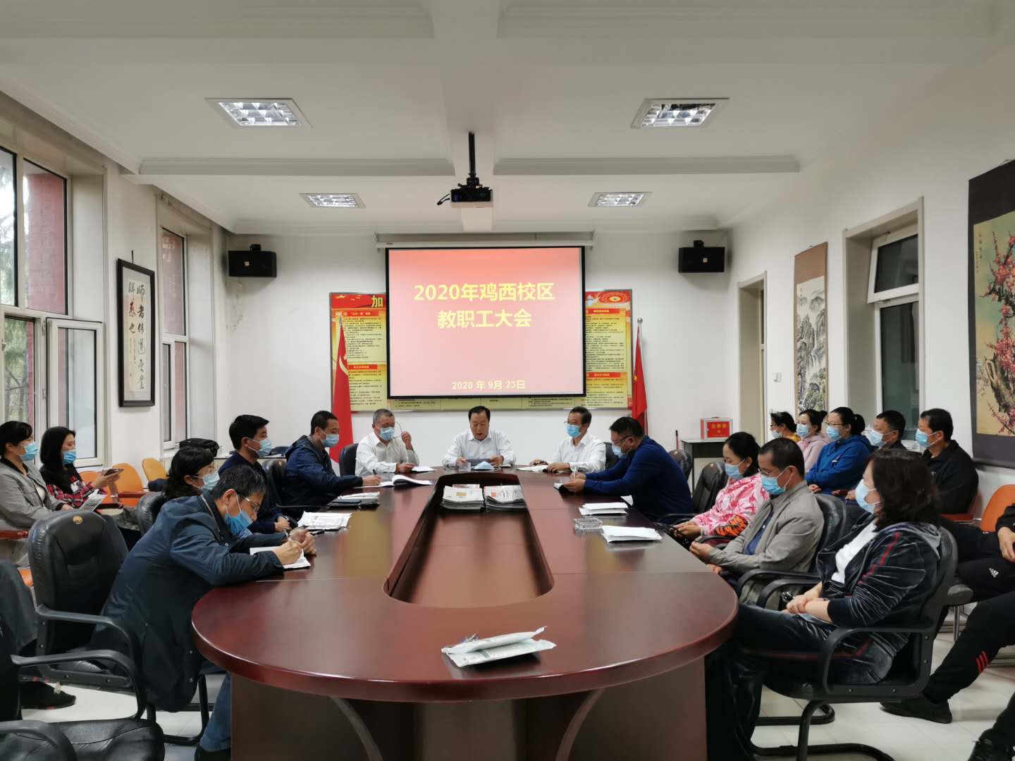 9月23日下午,鸡西校区在教学楼209会议室召开教职工大会。全体教职工参加了大会。会议由工会副主席、继续教育学院副院长李鹏银主持。