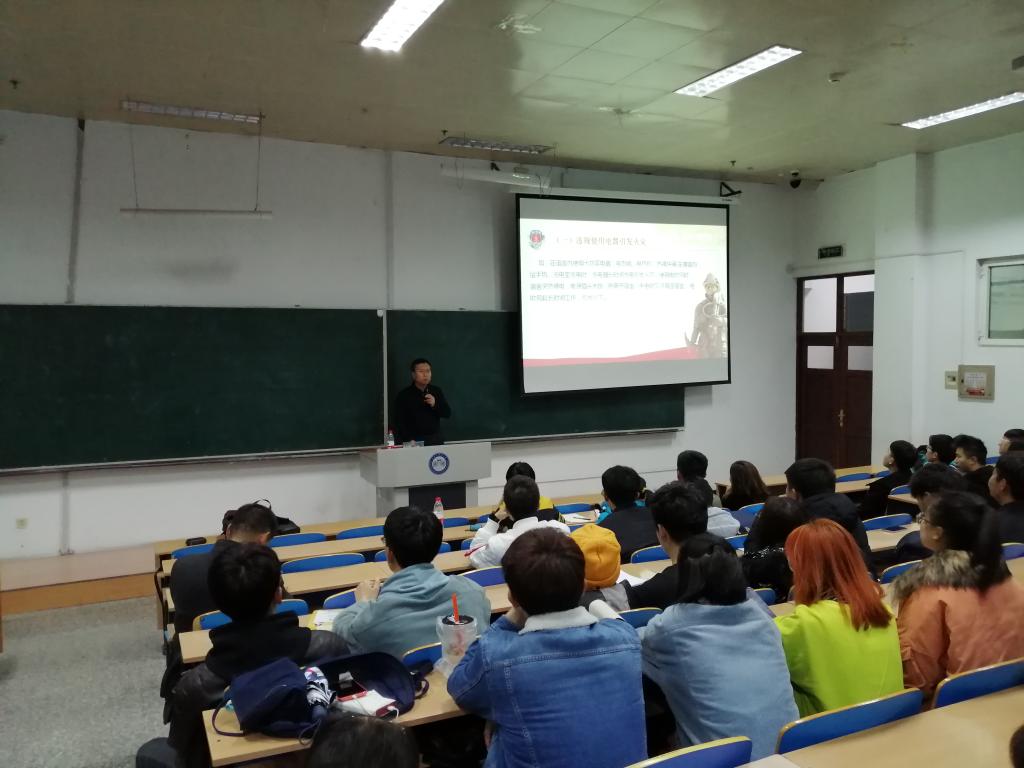 加强重点区域、重点人员的消防安全教育。10月31日举办了“平安杯”安全知识竞赛;11月12日,电信学院邀请保卫处副处长张景奎为学院所有学生寝室的寝室长、创新基地学生负责人、团学组织部长级以上学生干部开展了消防安全知识讲座;11月12日,联合外国语学院等六个学院开展消防安全疏散演习和消防器材使用实操演练。