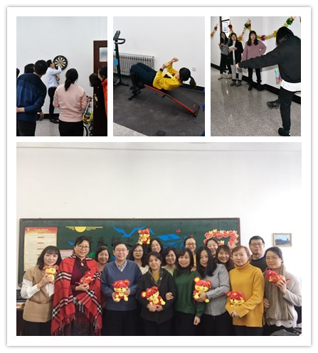 院党委书记隋大勇在联欢会上发表讲话,代表外国语学院向全体教职工,致以节日问候和新年祝福。院长徐亚辉对教师一年来的辛勤工作予以肯定,并对为学院发展付出努力的教职工们表达了感谢。接下来进入活动环节,活动形式丰富多样,教师们踊跃参加活动,踢毽子,转呼啦圈,射飞镖,套圈,动感单车以及仰卧起坐比赛,现场气氛十分活跃。最后学院工会还为每位教师准备了精美的小礼物,以表达新年祝福。