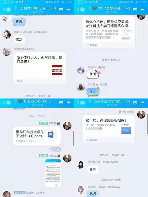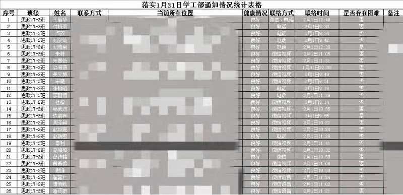 排查精确化。为全面做好学院学生排查统计工作,了解每名学生的身体健康、所在位置、生活困难等情况,学工办主任孙晓辉、辅导员高阳、班主任张庆通过电话、微信、QQ、视频的方式逐一与学生进行联系,真正做到了听见真声、见到真影,统计建档、倾情关注,每天不分时段与学生交流,切实做好思想教育、心理疏导、信息传递、健康排查等工作,教育学生一定不要提前返校,确保各项工作万无一失。