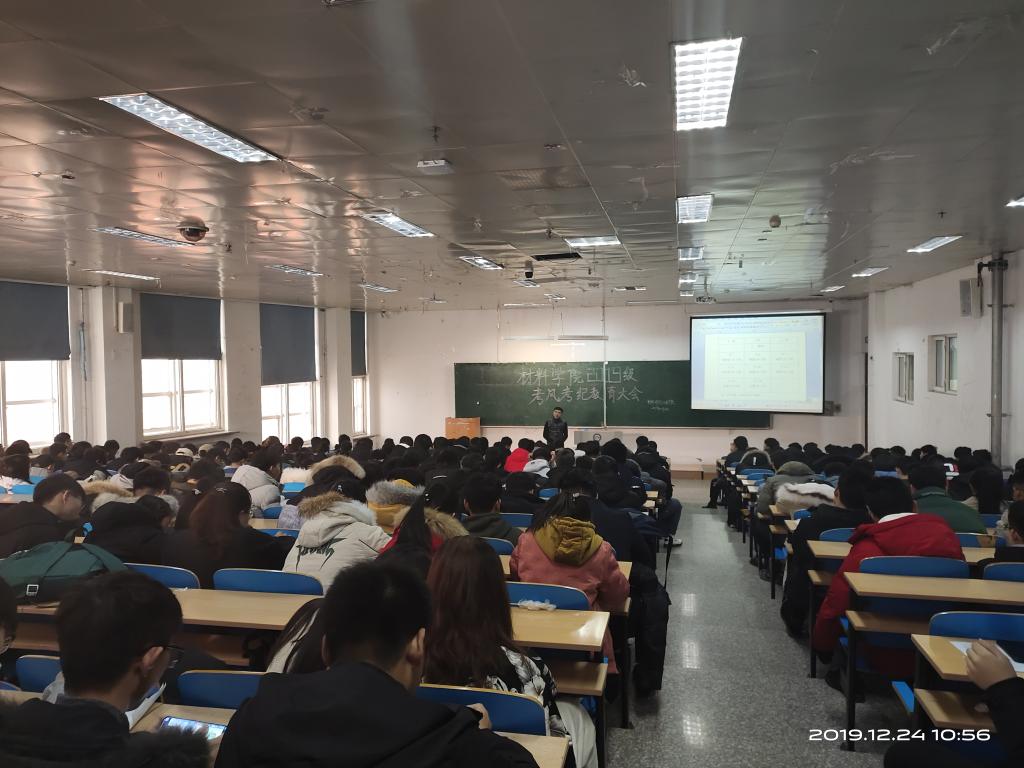 为进一步加强学生考风考纪教育,牢固树立学生考试诚信意识,材料学院于12月24日在主楼ES0303召开2019级考风考纪教育大会。材料学院辅导员王磊、王越,学生会主要干部、2019级全体学生参加大会。
