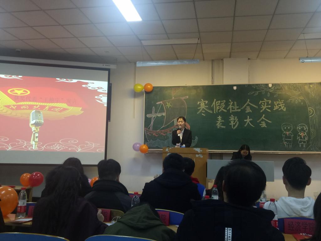 人文学院辅导员张利南对学院2017-2018年寒假社会实践整体情况进行了总结,分团委书记李娜宣读了表彰决议。与会嘉宾对在2017-2018年寒假社会实践中获得优秀个人荣誉称号的10名同学进行了表彰。