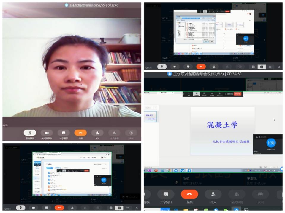 会上,无机非金属材料专业教研室副主任高丽敏分享线上教学经验,综合分析多种教学网络平台的优缺点,采用多平台相结合的方式达到最佳教授效果。以智慧树和腾讯文档相结合为例,对文档的导入、平台功能设置、课件呈现效果进行了逐步讲解,实现智慧树平台讲授课程播放动画和显示激光笔的功能,并将授课过程中遇到的问题进行了经验分享。