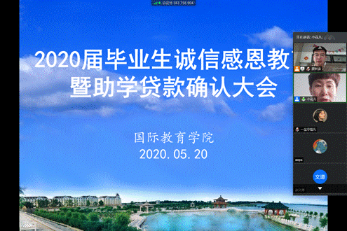为进一步培养大学生的责任意识、感恩意识、守信意识、主动还款意识,国际教育学院于5月20日以腾讯会议的形式视频召开了2020届毕业生诚信教育感恩暨助学贷款确认大会。