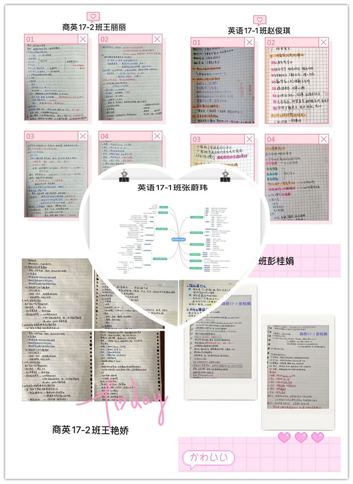 本次大赛由17级每名同学上交一份就业指导课的课堂笔记, 为力求评选结果真实公正,各班通过不暴露笔记姓名,多次筛选等方式进行民主评选。经评选,王振、彭桂娟、丁硕一、刘美君、王丽丽、王艳娇、张蔚伟、赵俊琪、韩丹、王英、宋雪冰、杨亚雪、蒋烨菲、胡亚男、梁文慧15名同学的笔记被评选为优秀笔记。最后,为充分发挥优秀模范带头作用,优秀笔记被制成图文并茂的抖音短视频。