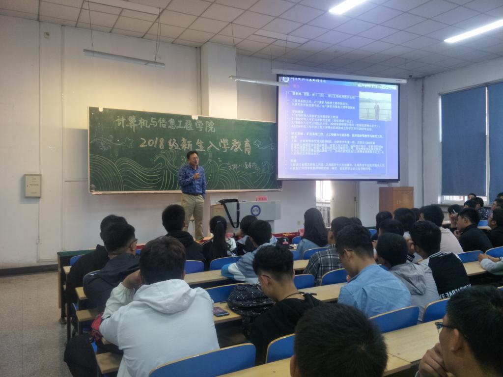 按照计算机学院2018级新生入学教育工作实施方案的安排和部署,为了尽快使2018级学生适应大学生活,全面了解计算机行业发展特点和人才培养模式,认识到新时代高等教育改革对大学生未来学习将产生的影响,计算机学院院长董春游教授于9月21日上午为全体18级新生开展了以“高等教育新时代对大学生的影响”为主题的专题讲座。