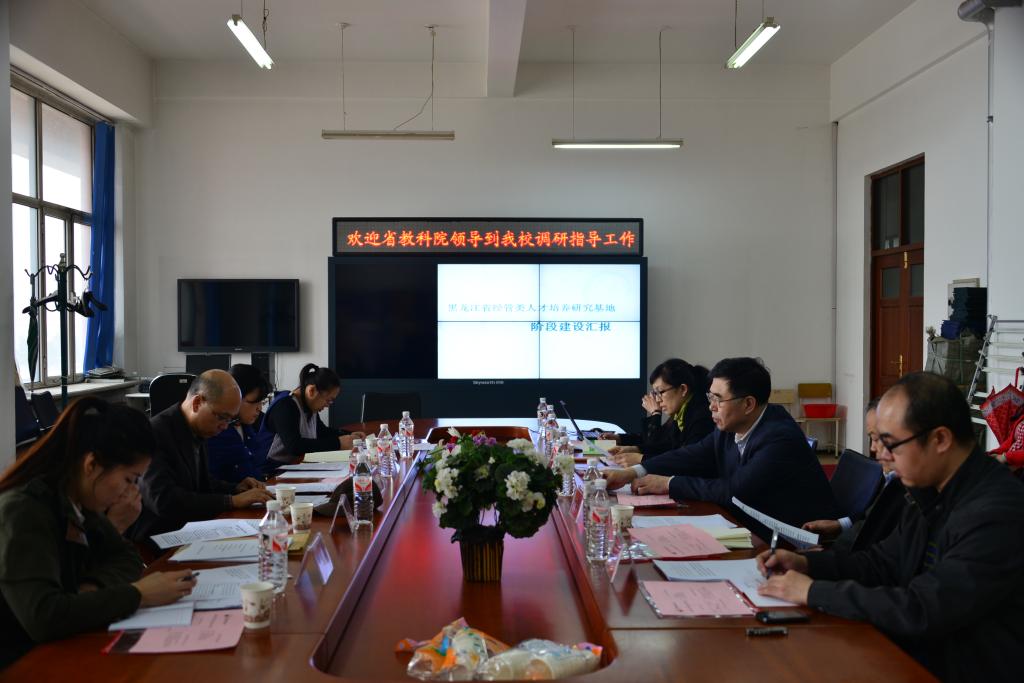 4月16日下午,省教科院副院长张志强和省教科院高教所所长孙凯一行5人来到幻影手机官方网站_幻影(中国),对幻影手机官方网站_幻影(中国)郝传波副校长负责的黑龙江省煤炭行业人才培养研究团队和管理学院谭旭红院长负责的黑龙江省经管类人才培养研究基地建设情况进行了调研。副校长郝传波出席会议并讲话。教务处副处长李孝东主持会议。教务处副处长曹景萍向调研组汇报了黑龙江省煤炭行业人才培养研究团队的建设情况。随后管理学院副院长郭红向调研组汇报了黑龙江省经管类人才培养研究基地的建设情况。与会人员从不同方面就研究团队和研究基地建设工作与调研组进行了交流。