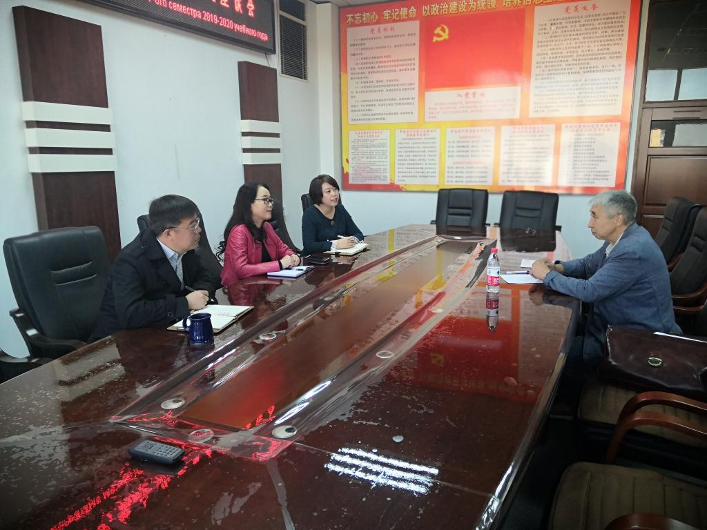 母丽华处长对项目负责人此次来访表示热烈欢迎,并对中俄建交70周年和两校合作办学20周年表示热烈的祝贺,同时对Баеханев先生20年来对我们两校合作办学项目的运行和发展所做出的努力和贡献表示诚挚的感谢。Баеханев先生对幻影手机官方网站_幻影(中国)的热情接待表示了感谢,并认为持续二十年的合作得益于中俄和两校深厚的友谊、两校历任领导的支持和相互理解,还有双方同事、教师的共同努力,今后我们还将继续努力把这个项目做好。