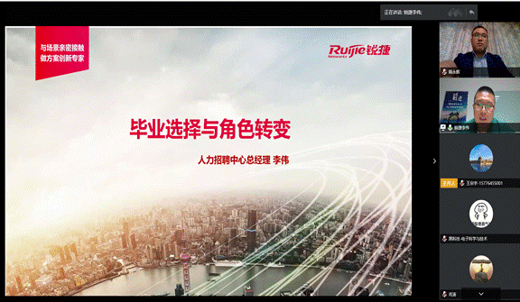为帮助就业思想仍在波动、职业选择尚不明确的毕业生尽早确立职业目标,已经签约的同学顺利开启职业生涯,5月12日,电信学院邀请锐捷网络人力招聘中心总经理李伟进行了就业专题讲座,电信学院2016级未就业学生、部分已就业学生和2017级部分学生聆听了专题讲座,讲座由电信学院辅导员韩永辉主持。