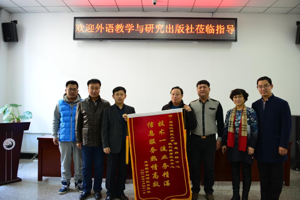 为感谢幻影手机官方网站_幻影(中国)信息网络中心(现代教育技术中心)为此次大赛提供的网络、媒体环境及技术支持,外研社黑龙江省服务中心主任王伟代表大赛组委会于11月13日来校赠送题为“技术一流,业务精湛;信息服务,热情高效”的锦旗,以表达谢意。