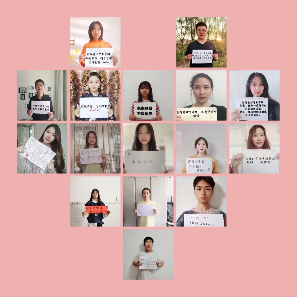 此次线上送祝福活动分为四种不同的形式:照片送祝福、文字传温暖、视频抒不舍、歌声寄深情。每字每句皆是学弟学妹们为2020届毕业生撰写的毕业赠言,抒发不舍情怀。熟悉的地方,熟悉的人,说不出口的那些柔软的话,如今融合在了各式各样的祝福中,他们用轻快的方式表达诚挚的祝愿,用真情实感让毕业生们感受温暖。