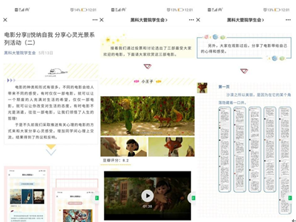 5月7日至5月15日推出分享电影感受活动。为了更好的让学生释放平日里学习、生活的压力,管理学院向学生推荐多部青春励志、有教育意义的优秀影片,同学们任选一部进行观看并与大家分享交流观影感受,最终选出三部最受同学欢迎的电影及其影评。通过本次活动,使同学们净化了居家抗“疫”的躁动心灵,增进思考、提高品味,提升了学生的人文素养。