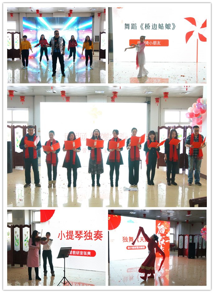 活动伊始,院长谭旭红用激情饱满、铿锵有力的致辞拉开茶话会的序幕。管理学院领导班子的诗朗诵《初心与使命》,讴歌了管院开展“不忘初心,牢记使命”主题教育的坚实成果,抒发了管院人对初心和使命的践诺和对管院高质量发展的美好祝愿。整场茶话会节目充满特色,异彩纷呈。有激扬旋律、吟唱岁月的合唱《明天会更好》、奏响人生“爱的华尔兹”的歌舞《世纪春雨》,欢腾搞笑的《吉祥宝贝舞》舞出燃烧岁月中勇奋斗共担当的激情。台上声情并茂,抑扬顿挫,富有节奏的朗诵《不忘初心、砥砺前行》强有力地撞击着台下广大教职工的心,强烈激发了全体教职工的自豪感、责任感、使命感,全方位展现了新时代管院人的精神风貌。学工办带来的音诗画《时间都去哪了》,充分展示辅导员工作日常的忙碌和立德树人的初心。令人开怀大笑的三句半《大家都说管院好》传达出“工作修行,事业养生”的价值理念与蓬勃发展的管院风貌。茶话会期间,穿插的小游戏“苦尽‘柑’来”、“遍地开花”以及猜成语环节,将全场热情彻底点燃,使整个会场成为了欢乐海洋。