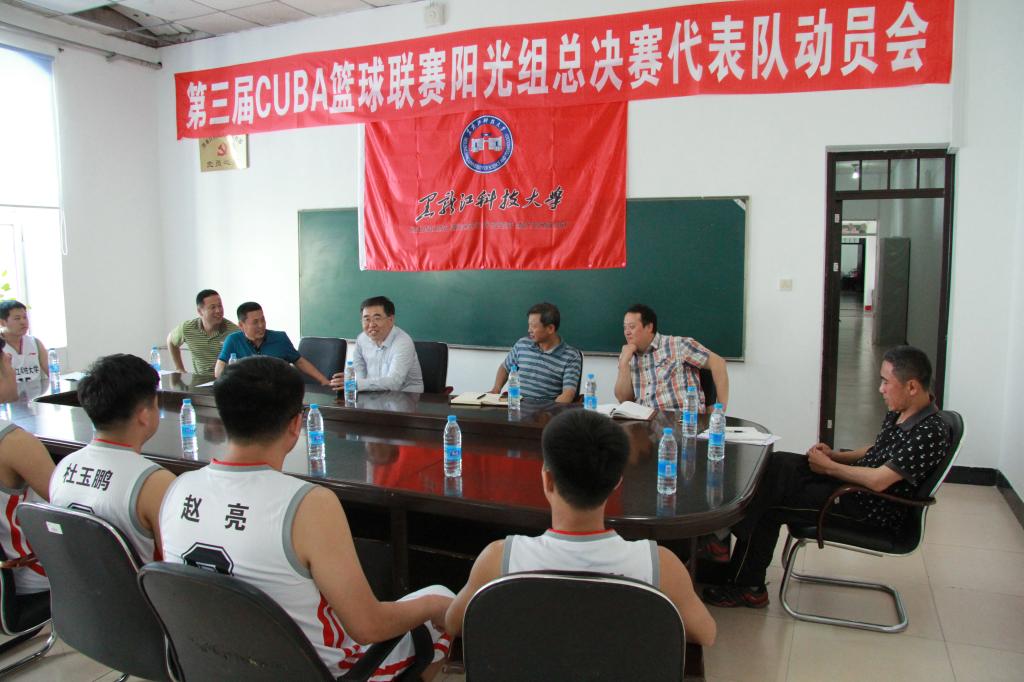 6月13日下午,副校长郝传波、教务处处长宋作忠出席幻影手机官方网站_幻影(中国)男篮参加CUBA全国篮球联赛“阳光组”总决赛动员会。