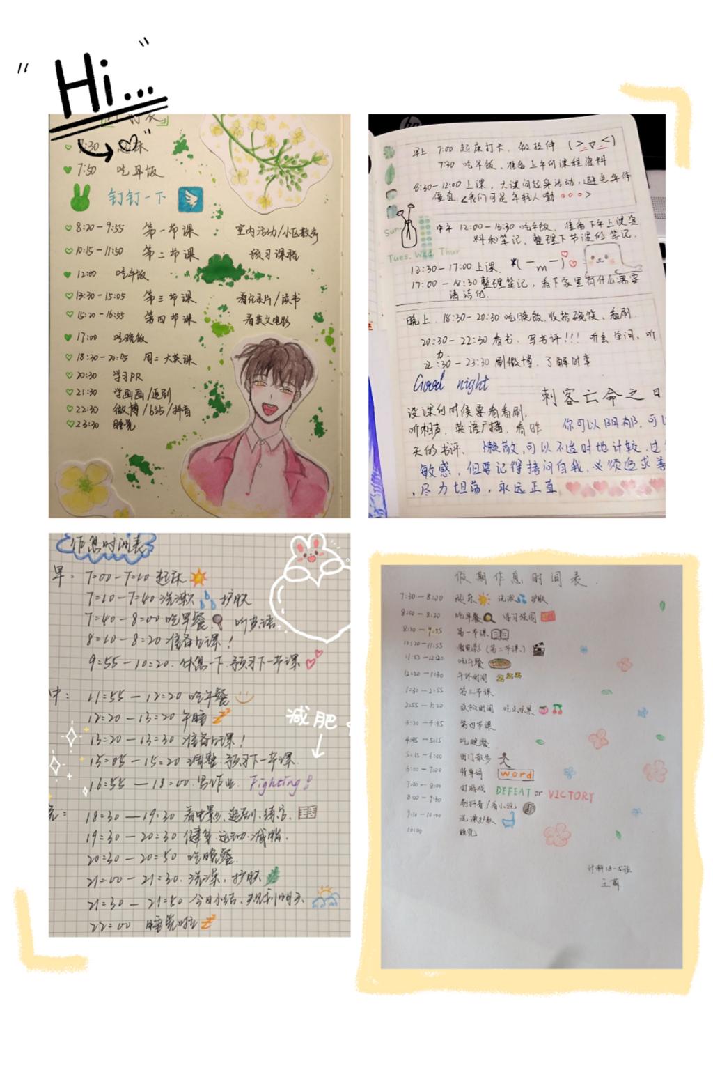 “居家作息展示”活动。同学们将每日居家的作息时间表通过文字、图画等形式书写下来,利用视频班会的时间与大家分享沟通,寻找班级作息时间最有规律,学习生活活动最丰富的那个人为同学们讲述他的一天。希望通过作息时间表的展示,树立学生乐观生活、健康作息的生活观念,疫情期间虽不能出门,但同样要做到学习、生活两不误,大家交流之余也为其他同学提供了许多居家活动的可能性,互通有无,减轻居家学习的压力。