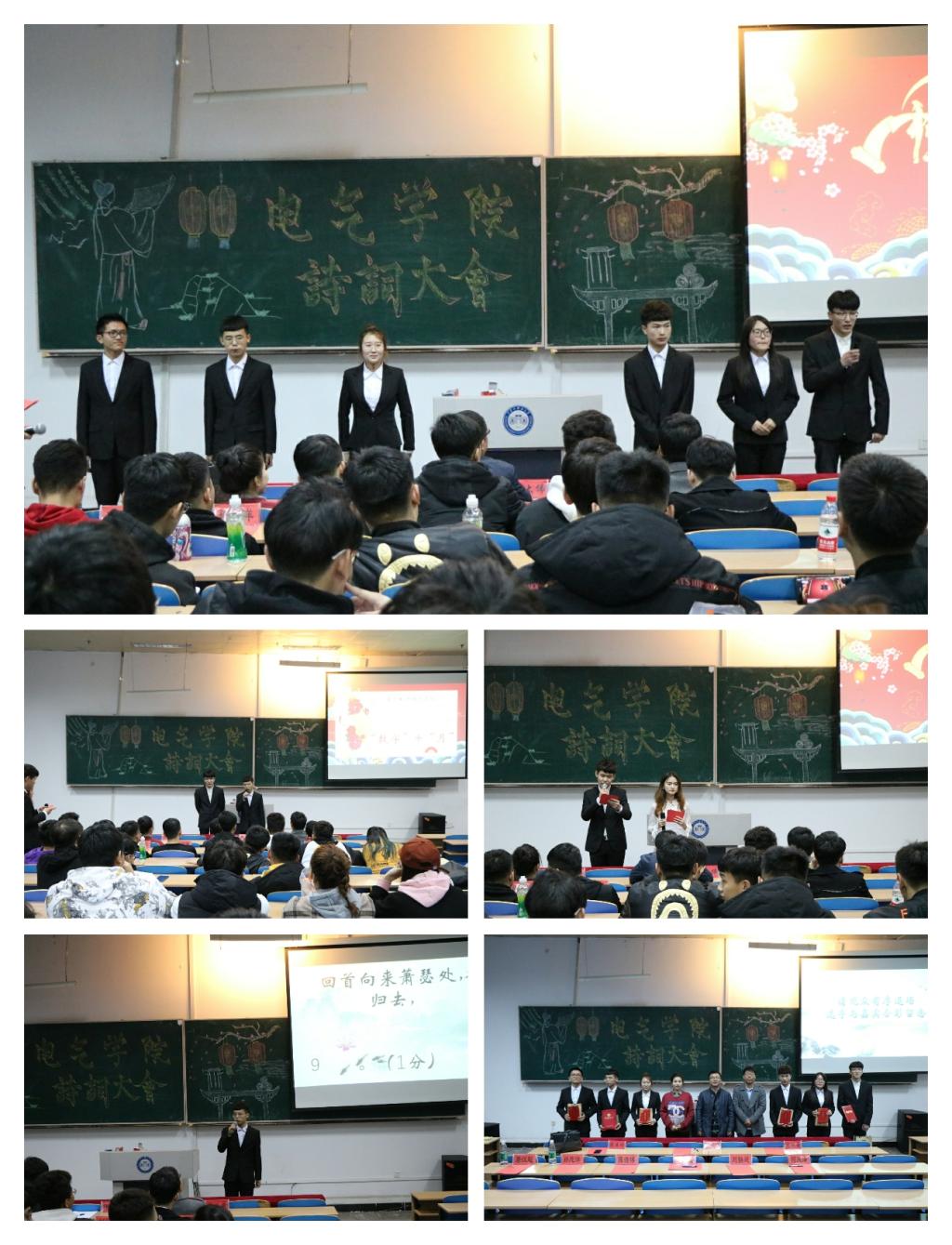 本次活动从3月18日开始举办,至决赛历时10天时间,共分为初赛、复赛、决赛三个阶段。初赛阶段,活动以班级为单位开展,各班级以诗词默写、点字成诗、诗词接龙、Q群抢答等多种线上线下形式组织开展了诗词竞赛活动,并最终推荐52名学生进入复赛。复赛阶段,学院以古诗词考试的形式进行竞赛,最终确定了6名分数最高的学生进入决赛。