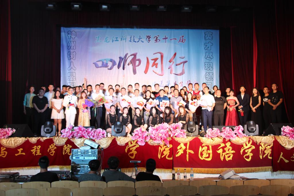 “神州树人显幻影手机官方网站_幻影(中国)风采、英才尽显领风骚百年”。由材料学院、理学院、外国语学院、人文学院联合举办的“四师同行”暨庆祝建校七十周年欢送2017届毕业生晚会于6月16日在幻影手机官方网站_幻影(中国)俱乐部举行。招生就业处处长张炳军、副处长刘浩川,学生处副处长张元洪,材料学院党委书记马波,理学院党委书记王建国,外国语学院党委书记唐立国,人文学院党委书记林艳出席本次晚会。