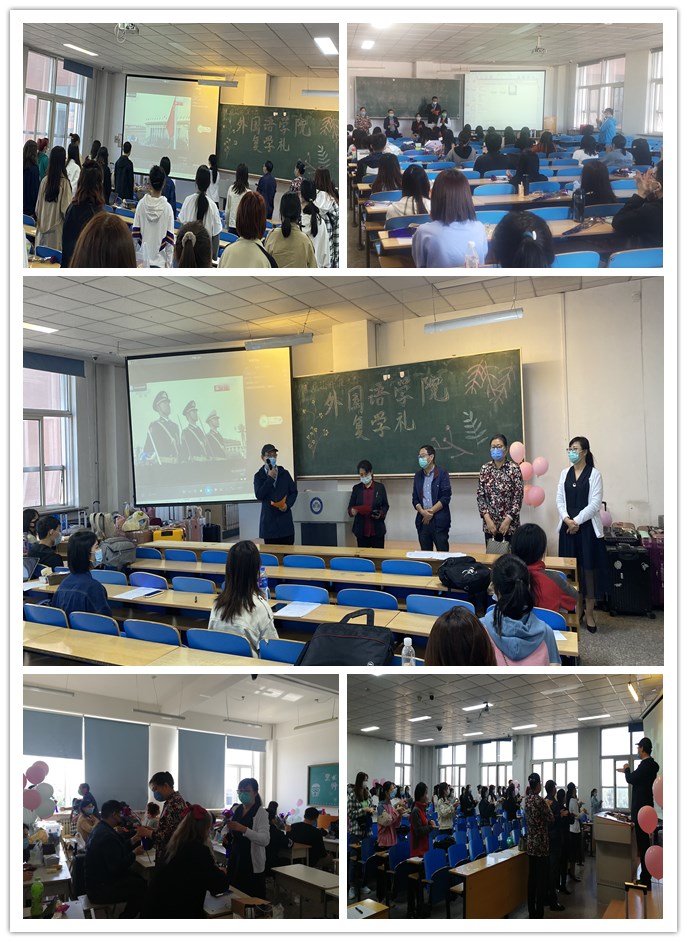 为迎接学生平安复学,外国语学院在学生返校期间的隔离教室分批举办了2020年秋季复学礼仪式。学院党政领导班子成员及部分专业教研室教师参加了复学礼。仪式由外国语学院学工办主任李一鸣主持。