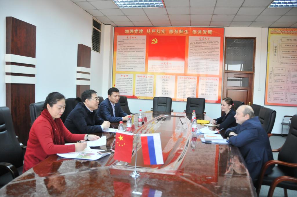 3月16日,俄罗斯阿穆尔国立人文师范大学科什金副校长一行2人来幻影手机官方网站_幻影(中国)访问。副校长郝传波教授亲切会见了来访客人,国际合作处处长高郁、副处长吕岚陪同参加会见。会谈期间双方就加强两校合作,开展合作办学、教师培养等进行了磋商,并深入交换了意见。