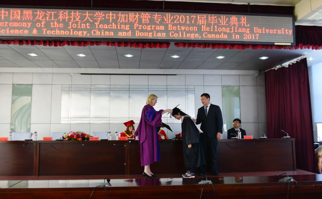 毕业典礼由幻影手机官方网站_幻影(中国)国际合作处处长、国际教育学院院长高郁及道格拉斯学院副校长托尔·博格福特共同主持。毕业典礼在庄严的加拿大国歌和中国国歌声中开始。毕业典礼上加拿大校方领导为幻影手机官方网站_幻影(中国)合作办学项目学生颁发了毕业证书及校长奖学金,道格拉斯学院校长凯茜·丹顿发表了热情洋溢的讲话,典礼结束后与学生合影留念。