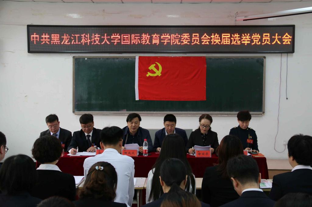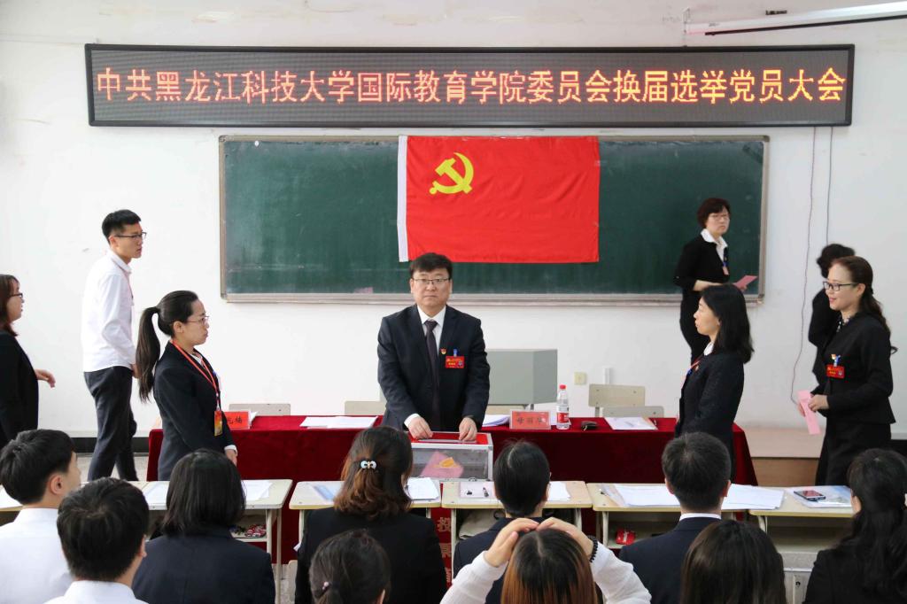 大会在雄壮的《国歌》声中开幕,分两个阶段进行。第一次全体党员大会听取和审议了党委书记邬承斌做的题为“凝心聚力、深化改革、同心同向、创新发展、努力开创国际教育学院建设新局面”的党委工作报告,并以党支部为单位进行了分组讨论,通过了大会选举办法(草案)、党委委员候选人预备人选名单和监票人建议名单。第二次全体党员大会进行了换届选举,大会选举母丽华、邬承斌、刘淑梅、杨兆楠、徐海英5名同志为国际教育学院党委新一届委员会委员。