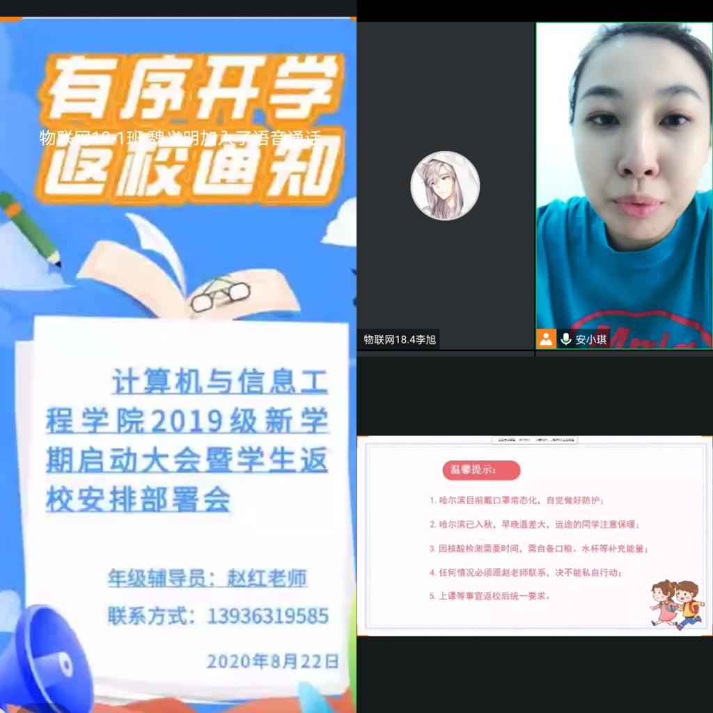 思想引导,年级大会解疑难。按照学校下发的《幻影手机官方网站_幻影(中国)2020年秋季学生返校报到安排》,学院各年级分别在腾讯会议、钉钉会议等平台召开线上年级大会与学生干部大会。会上,辅导员老师向同学们进一步传达了关于返校复课的相关要求,针对何时返校、途中注意事项、核酸检测以及返校后相关安排,耐心细致地进行解答。