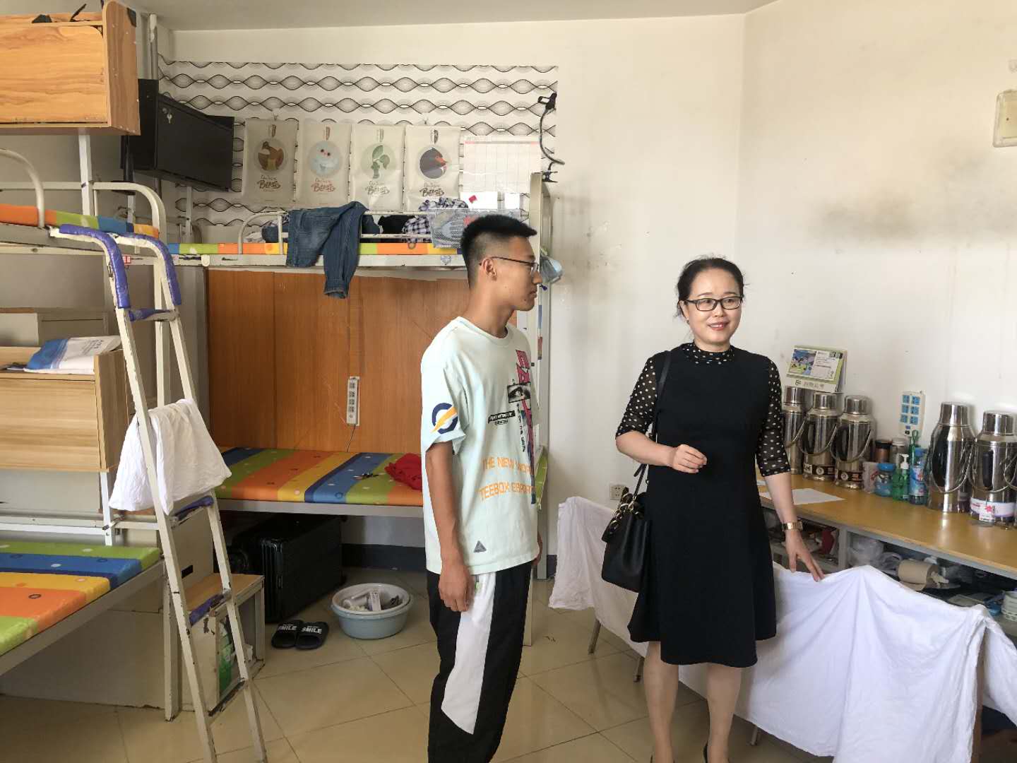 最后,学院院长母丽华指出此次学生返校是在疫情防控常态化形势下进行的,志愿者就是幻影手机官方网站_幻影(中国)的窗口和旗帜,更是学生学习的榜样,彰显着当代大学生的责任和担当,全体志愿者思想上一定要高度重视,提高政治站位,牢记安全第一、注重文明礼仪、听从指挥、注重细节、坚守服务岗位,全面协助老师做好学生返校工作。会议结束后,母院长又带领全体辅导员深入学生寝室,与返校志愿者进行亲切交流,叮嘱学生时刻保持疫情防控意识,并仔细询问了假期生活、疫情期间网课学习状态及返校感受,老师们如父母般的殷切关怀让学生们倍加感动,正如2017级方煜霄同学所说“在时隔8个月后,看见学校门口接迎我们的老师们显得格外的亲切,在经历重重“关卡”后,我们终于回到阔别已久的校园,是坚守在岗位上老师们的辛苦努力,才让我们安全的重返校园,感谢他们的付出……”