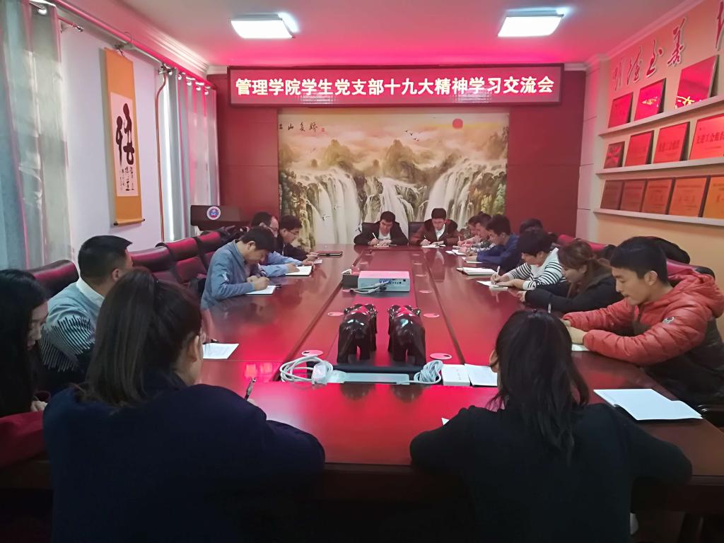 为进一步学习贯彻落实党的十九大精神,管理学院党委于11月13日召开了管理学院学生党支部十九大精神学习交流会。学院党委书记王洪秋、副书记徐健一以及各学生党支部书记、各学生党支部支委会成员参加了会议。会议由徐健一主持。