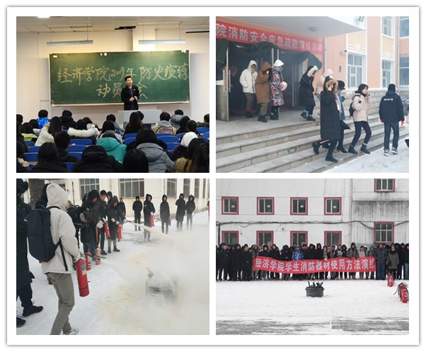 11月19日,经济学院组织开展了消防演练活动。学院党委副书记贺龙军,学校保卫处防火科徐长明、赵铁山,经济学院全体辅导员及学院十公寓全体女生参加本次演练。早6点50分全体工作人员在十公寓大厅集合完毕,召开现场会议,7点全体工作人员及参演学生全部准备完毕等待演习开始。7点10分十公寓拉响警报并释放烟雾弹,消防演练正式开始。各楼层负责人组织学生按照预先规划路线进行有序撤离,在辅导员老师与工作人员的指挥下,各楼层同学安全撤离,学生撤离完毕之后各楼层负责人对所有寝室进行检查,查看是否存在有学生被困寝室或未锁寝室门。7点20分所有同学撤离完毕。此次安全撤离用时短、效率高,各部门配合默契,按照预案顺利进行,未出现预案外事件。