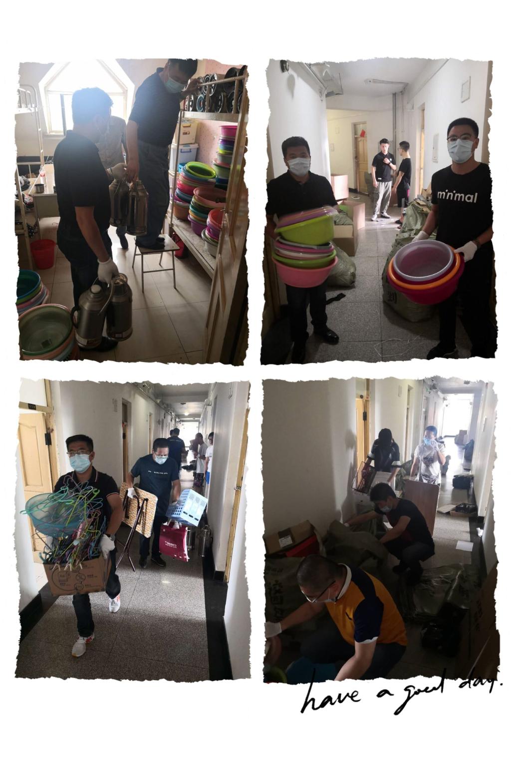 活动开始,全体人员在学生宿舍楼下集合,材料学院党委书记马波对本次活动提出要求:一是安全、平稳、有序的开展学生宿舍物品整理工作;二是有效的与学生进行协同合作,速战速决;三是希望通过此次活动,能强化党员同志们的模范先锋精神,不畏困难,奋勇向前的决心。党员同志们干劲十足,信心满满,秉持着物品虽小,情谊很重的理念,充分彰显材料学院与人事处党员同志们的满满爱心。