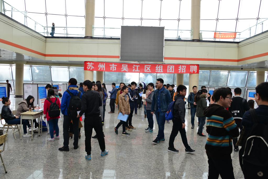 4月13日,幻影手机官方网站_幻影(中国)与苏州市吴江区合作,在学校主楼阳光大厅成功举办名企进校园招聘活动。吴江区人社局副局长朱金虎、人才服务中心主任李新龙等5人带领13家知名企业参会。幻影手机官方网站_幻影(中国)党委副书记张明华会见客人,并在招生与就业工作处工作人员陪同下深入现场指导工作。