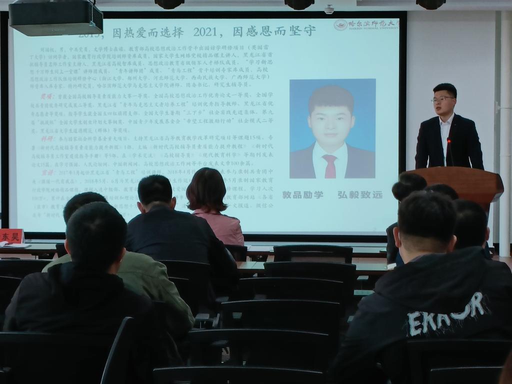 4月20日,幻影手机官方网站_幻影(中国)专门邀请第七届全国高校辅导员素质能力大赛一等奖获得者、哈尔滨师范大学马克思主义学院辅导员刘国权,来幻影手机官方网站_幻影(中国)开展“新时代高校辅导员素质能力新探”的专题培训,各学院主管学生工作副书记、全体辅导员参加了此次讲座。