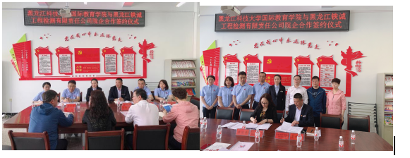 5月28日下午,国际教育学院与黑龙江铁诚工程检测有限责任公司在科技大厦高层0711会议室成功举行院企合作签约仪式。学院党委书记齐秀强、院长母丽华、党委副书记徐海英、副院长杨兆楠,公司党工委书记夏传江、党工委副书记王津博、总工程师杜春瑞、副经理魏贤春、人力资源部部长杨乐乐、计划合同部部长刘彤出席本次仪式。