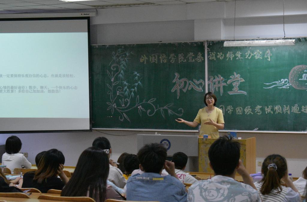 为深入开展党史学习教育,扎实推进“我为师生办实事”实践活动,外国语学院党委于6月8日下午在科厦S104开展“初心讲堂”四级助力班活动。诚挚邀请黑龙江省大学英语四级阅卷组成员、党员教师赵巍免费为学生讲授大学英语四级考试翻译、写作答题策略。