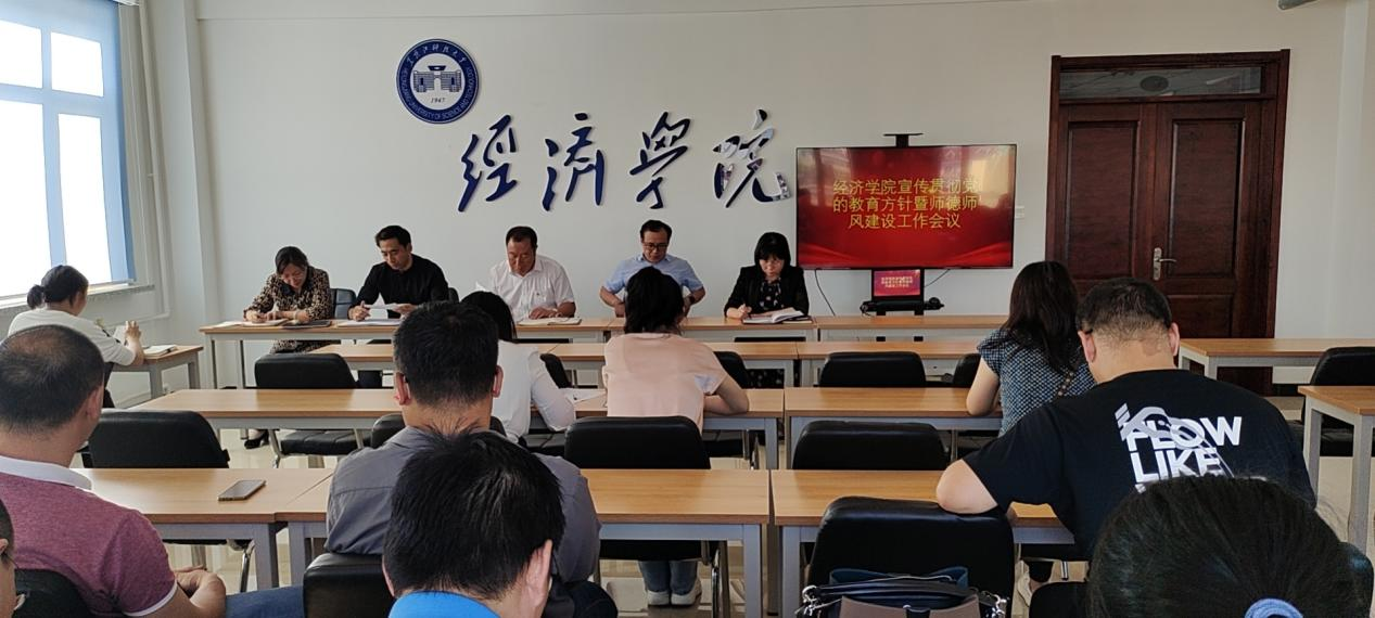 根据学校党委关于《关于深入学习宣传贯彻党的教育方针的通知》的工作部署,经济学院于9月15日在朝阳楼501室召开了宣传贯彻党的教育方针暨师德师风建设专项推进会。会议由学院党委书记张德本主持,学院党委副书记邬丽群做宣读,学院全体职工参加会议。