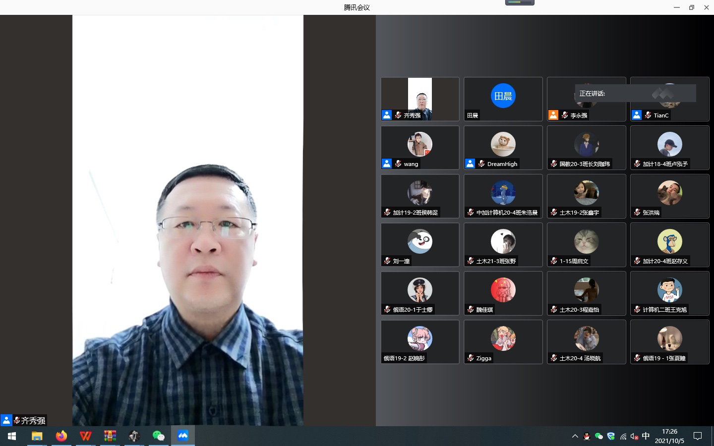 课堂上,齐书记对各位学生干部、党员志愿者为阻断疫情扩散,打赢校园疫情防控战,助力学校核酸检测、公寓稳控、健康监测等工作中冲锋在前的表现给予高度认可,并对全体学生强调四点:一是坚决响应学校部署,非必要不外出,同时做好个人防护工作及体温监测工作;二是快速适应线上学习方式,保证学习成效;三是保持良好心态,树立战胜困难的积极信念;四是充分发挥班级信息安全员作用,遇到问题和困难及时反馈。