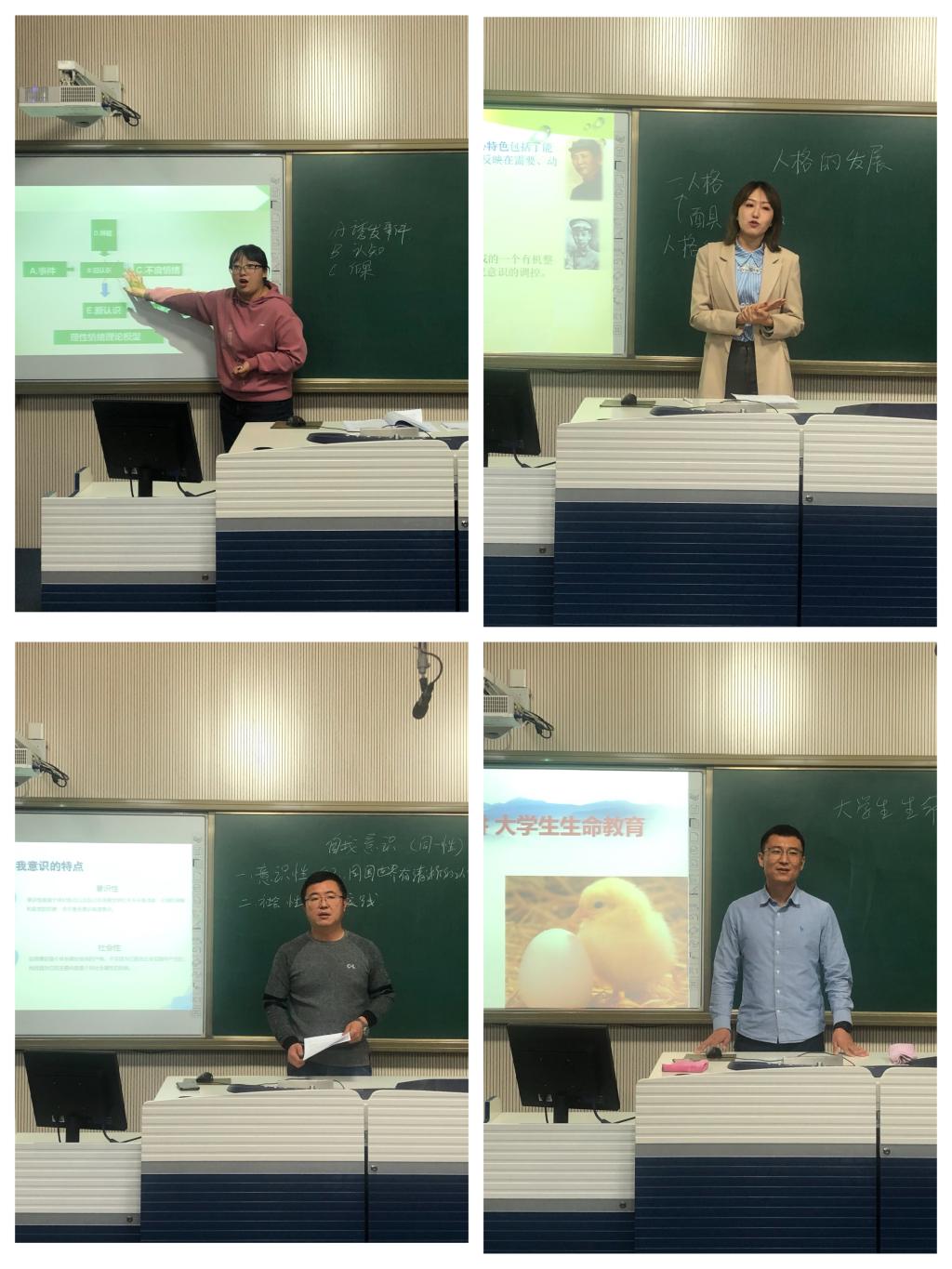 试讲教师根据中心提出的四个课程授课内容选择一个主题进行试讲,内容涉及人格发展、自我意识、情绪管理、生命教育。各位老师采用启发式、案例式、提问式等教学方法,与大学生的生活紧密结合,生动地展现了授课内容,具有较强的吸引力。四位评委老师分别对每位新授课教师进行了一一点评。他们指出,教师们对教学内容娴熟,讲述内容充实,对问题阐述思路清晰、重难点突出,讲课有热情和感染力,能够给予学生思考和启迪性。同时,针对新教师教学的提高和存在的问题,提出了以下三点:一是要做好充分的教学准备。讲课之前要做到心中有教材、有学生、有教法、有目标,遵循教育规律和学生心理生理发展规律,有针对性地进行教学;二是要增加师生互动。以学生为中心,给学生留以反馈的时间,充分的调动学生学习兴趣,吸引学生的注意力;三是要板书与课件相结合,黑板板书是教师课堂教学中不可或缺和不可替代的基本功,板书尽量不重复课件内容,要做到详尽丰富。