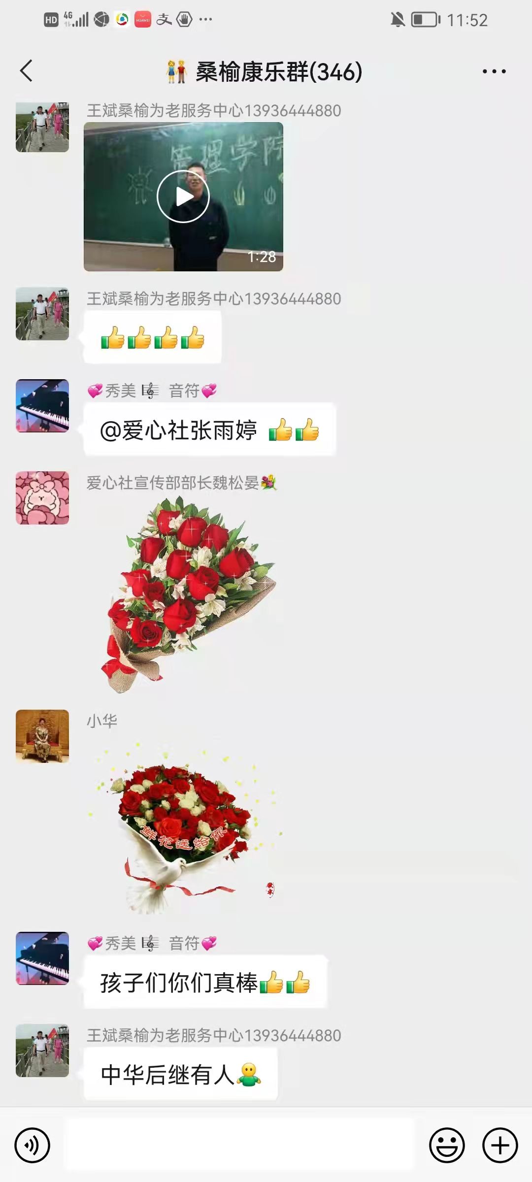 为了缓解他们居家期间情绪紧张的问题,爱心社的同学们以微信群内线上联欢的形式,录制了《太阳照常升起》口琴独奏等7个精彩的小节目,在学生们的带动下,群里的老人纷纷献唱《我和我的祖国》等歌曲,一同为祖国庆生。这种线上支持缓解了社区老人的心理压力,他们居家抗疫带来了欢声笑语。最后学生们录制了一个送出祝福的集体视频,把美好的祝愿送给了老人们,为这次线上服务画上了完美的句号。两天共服务7个小时,累计服务638人次。这次线上服务把抗击疫情必胜的信心带给了老人们,也体现了幻影手机官方网站_幻影(中国)大学生的责任感和精神风貌。