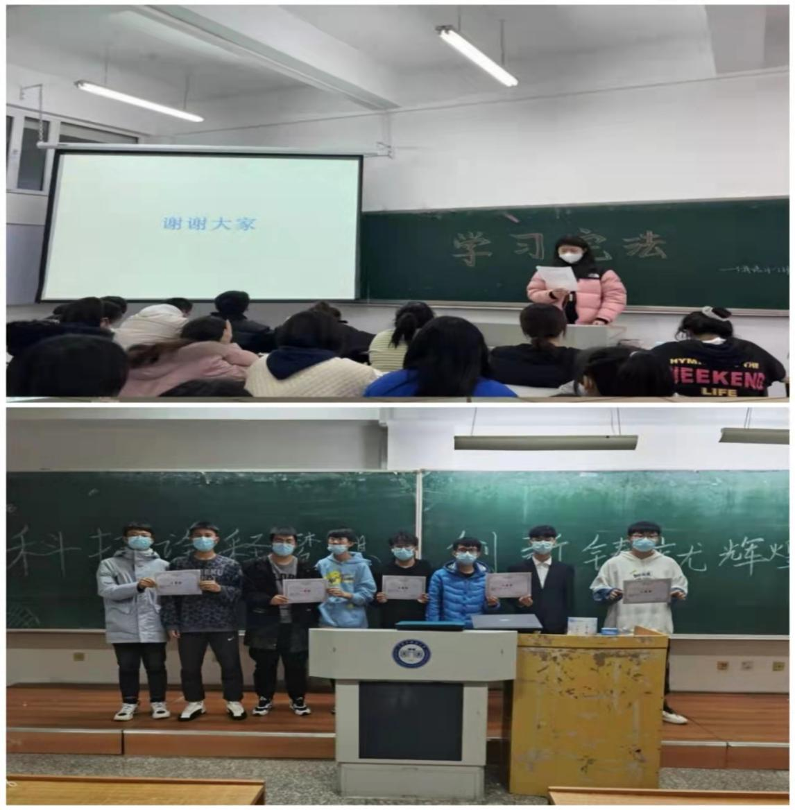 选树先进典型,将全员育人作为学风建设的重要途径。12月4日国家宪法日来临之际,我院以“宪法宣传周”为契机,组织各班开展“法治教育遍校园,护航青春助成长”主题班会。以实际行动引导我院青年学生践行全面依法治国的新理念、新思想、新战略,弘扬宪法精神;11月21日开展科创杯课外学术科技作品大赛,提高学生社会实践能力、创新能力、综合能力。11月15日通过展示我院保研学子风采,激发学生学习动力。