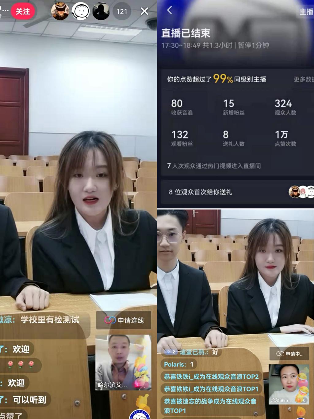 系列活动的首场,采用“抖音直播+互动抽奖”为主要形式的线上宣讲,共有324人观看,获赞1万,达到了普及宣传艾滋病防治知识的目的。本次活动由空中大讲堂提供支持。厉岩老师介绍项目活动在实践教学和实践育人上的意义,哈尔滨市疾病预防控制中心艾滋病预防控制所副所长杨一偲作为专家为大家讲解了艾滋病的传播途径和预防方法。
