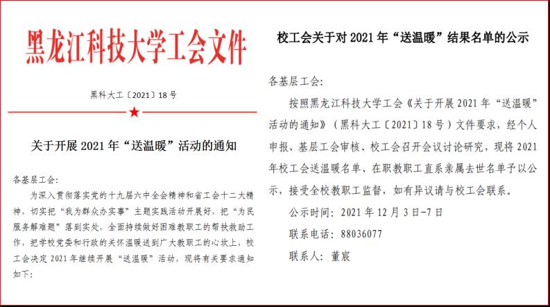 入冬以来,为开展好“有一种温暖叫工会在您身边”活动,校工会进行了精心筹备、周密部署。利用专项资金,慰问身患重大疾病、家庭遭遇重大变故以及直系亲属去世的教职工82人次,支出5.47万元,均已汇款至对应教职工银行卡中。同时申请省总送温暖资金2.4万元,慰问本人或家人身患重病的教职工,包括获得省“揭榜挂帅”亿元项目的负责人。