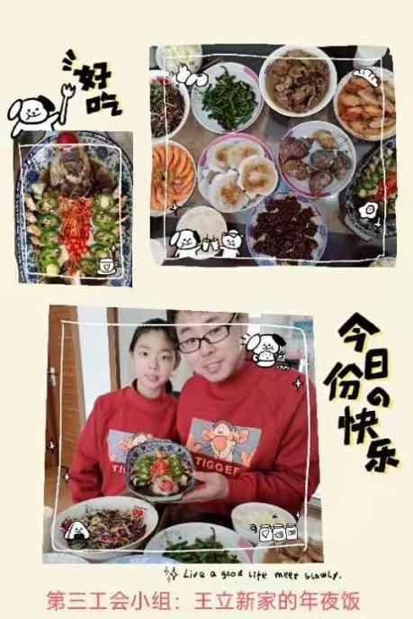 除夕之夜,全院教师以照片形式晒出了自家的招牌菜、年夜饭,并配以简短的文字说明和美好寓意。“参晒”作品既体现出年夜饭的合理搭配、营养健康、新颖时尚,又展现出了全家其乐融融、欢乐祥和的气象,更展示了“机械人”积极向上、争创一流的精神风貌。
