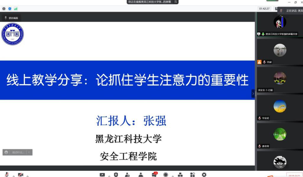 强化教师主体责任,保障教学质量。遵循线上教学规律,以知识点为主线、结合教学互动环节实施线上教学,注重课前温故、课上交流和课后答疑,精心设计学生课前预习、课上练习和课后作业任务,引导和发挥学生的自主学习动力。落实过程管理。坚持教学信息日汇报和周分析制度,及时汇总当前线上教学存在的问题,做到每周有落实有改进。推进教师线上教学能力建设。安全工程系主任沈斌以主讲课程《矿井通风基础理论》为例,开展了线上公开课,课后与教师们一起交流研讨了线上教学平台在课程教学的课前、课中、课后应用方式和如何从数据上分析学生学习参与度与成效,做到课内的持续改进。校教学创新大赛二等奖获得者张强老师以“论抓住学生注意力的重要性”为主题进行了线上教学分享,为提升线上课堂教学成效提供了有益参考。